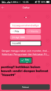 4. Bagian terpenting.. Ketik "hizza99". untuk mendapat koin 4000. :D